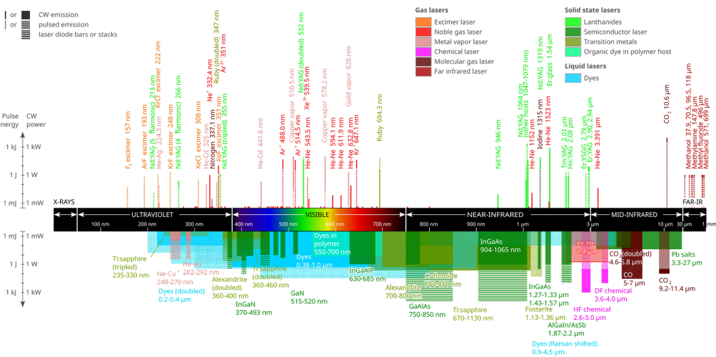 Laser Wavelengths by Material and Application