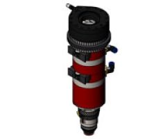 G4 Laser Process Head Assembly, 38mm Series, 34.8mm CA, Provision for Ø1.5" x 7.5” EFL optic in Removable cartridge with X-Y Adjustment, ¼” Tube Compression Fitting for Assist Gas & Water Cooled Spacers with 6mm tube push fittings for cooling the optic.