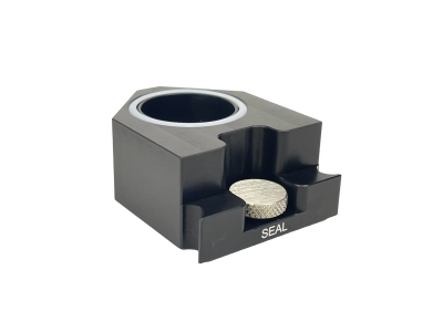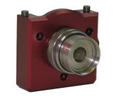Optic Cartridge for with provision for TLC Focus Lens. Upper and Lower Seals permit X-Y Cartridge Adjustment while sealing the beam path from contamination. Hardened Steel inserts provide precise relocation of cartridge. A Stainless Steel Thumbscrew locks the cartridge in place.