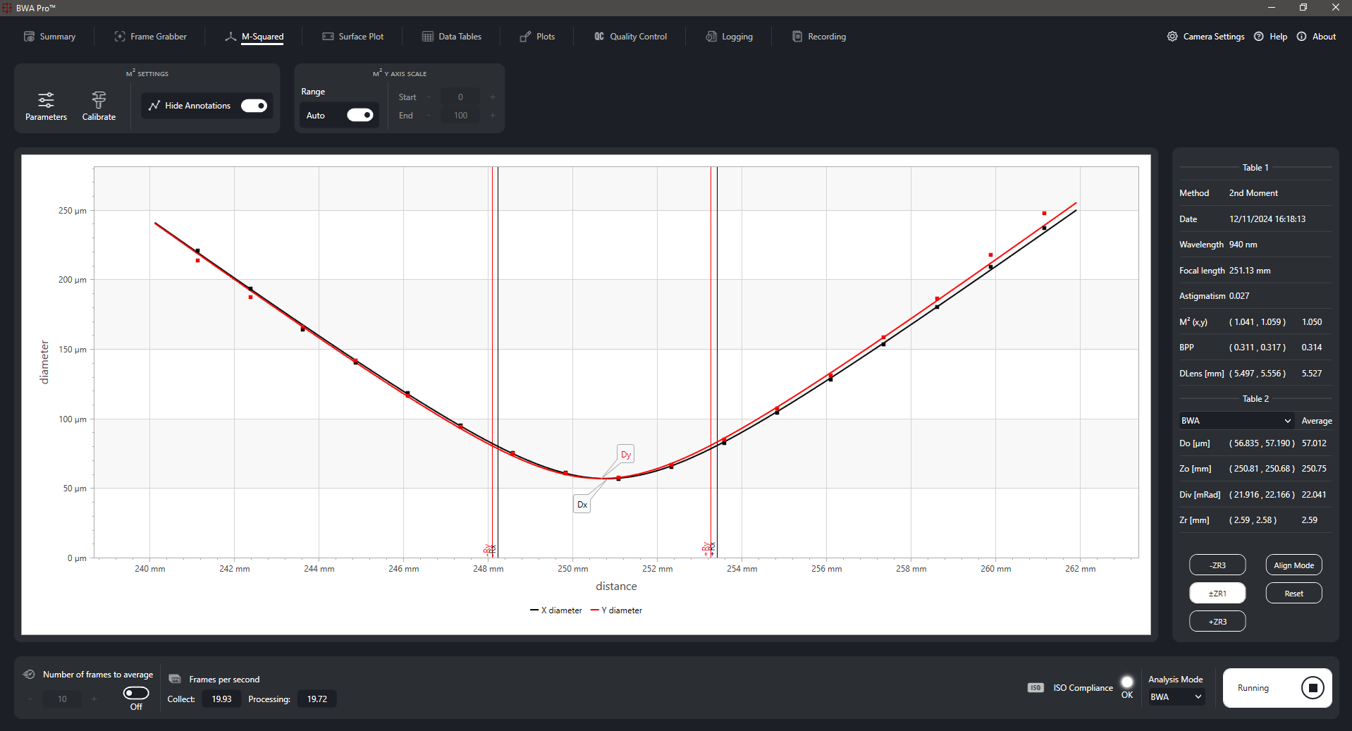 Provides the ability to monitor key laser beam parameters in real time, including waist position, focused spot size, M², and ellipticity. This live feedback allows for immediate adjustments and detailed analysis, enabling precise control over beam quality during experiments.