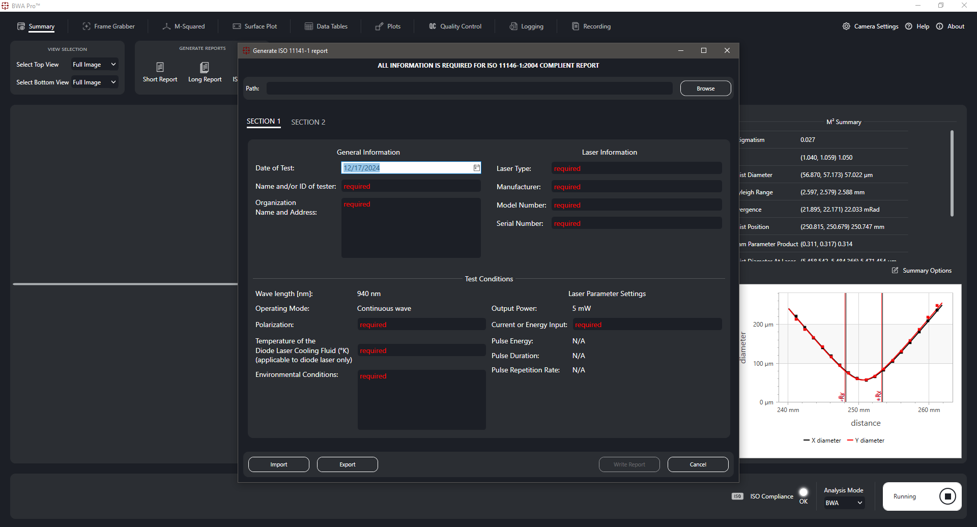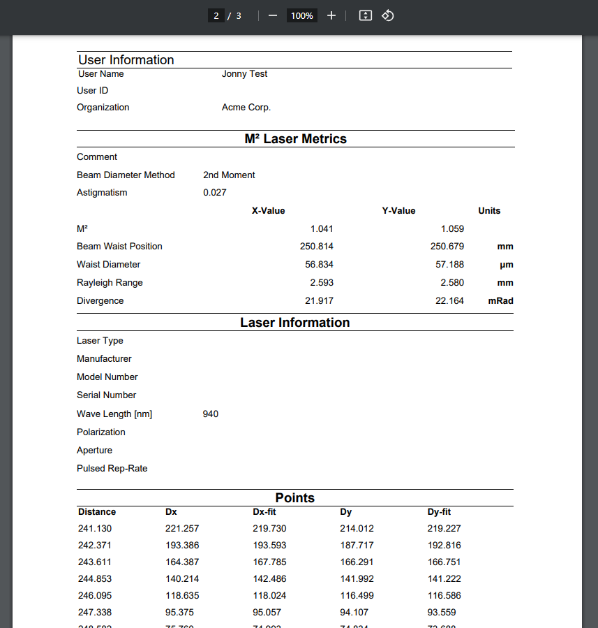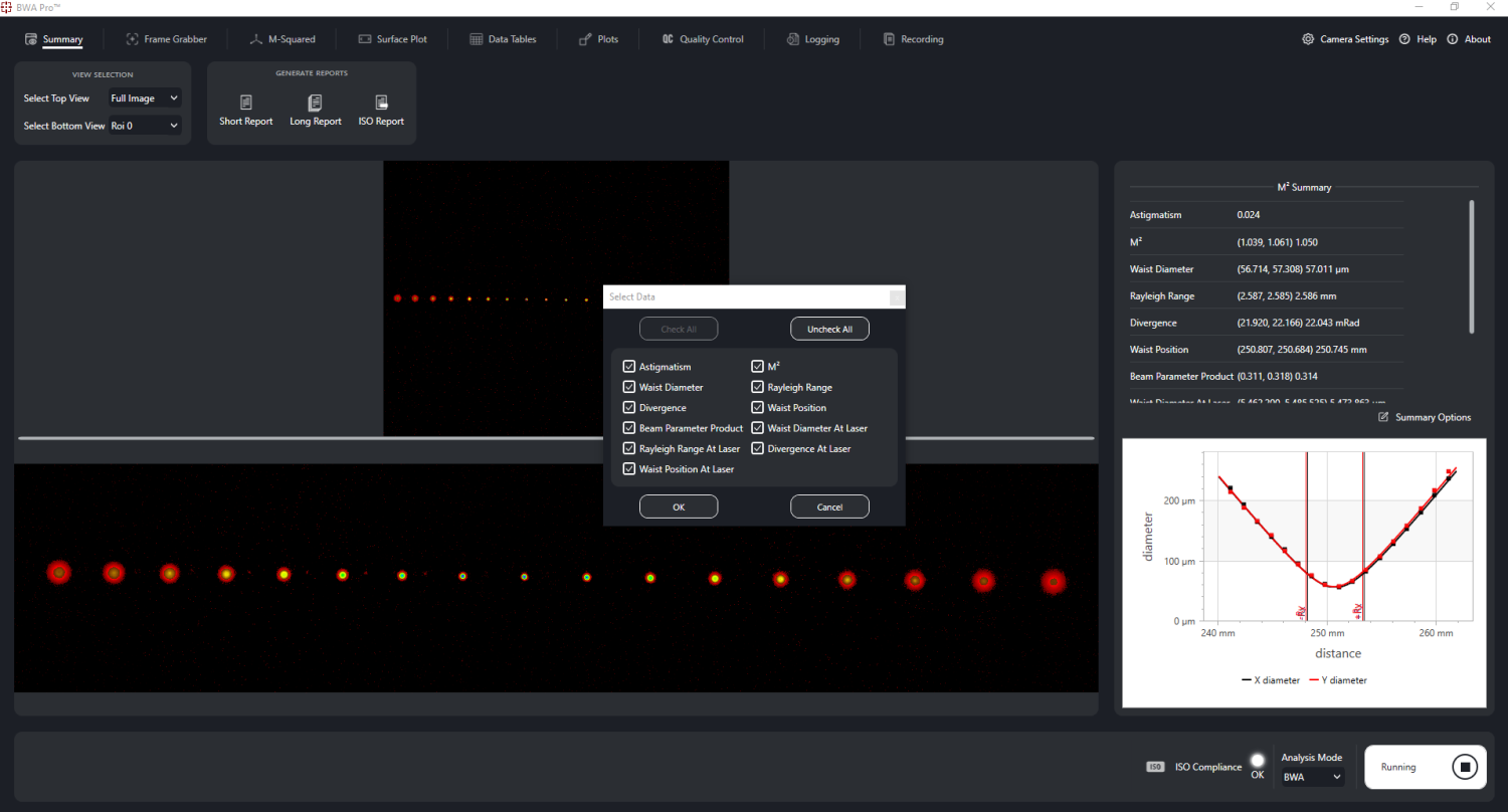 - ISO Report: Generates data formatted to comply with ISO 11146 and ISO 13694 standards.