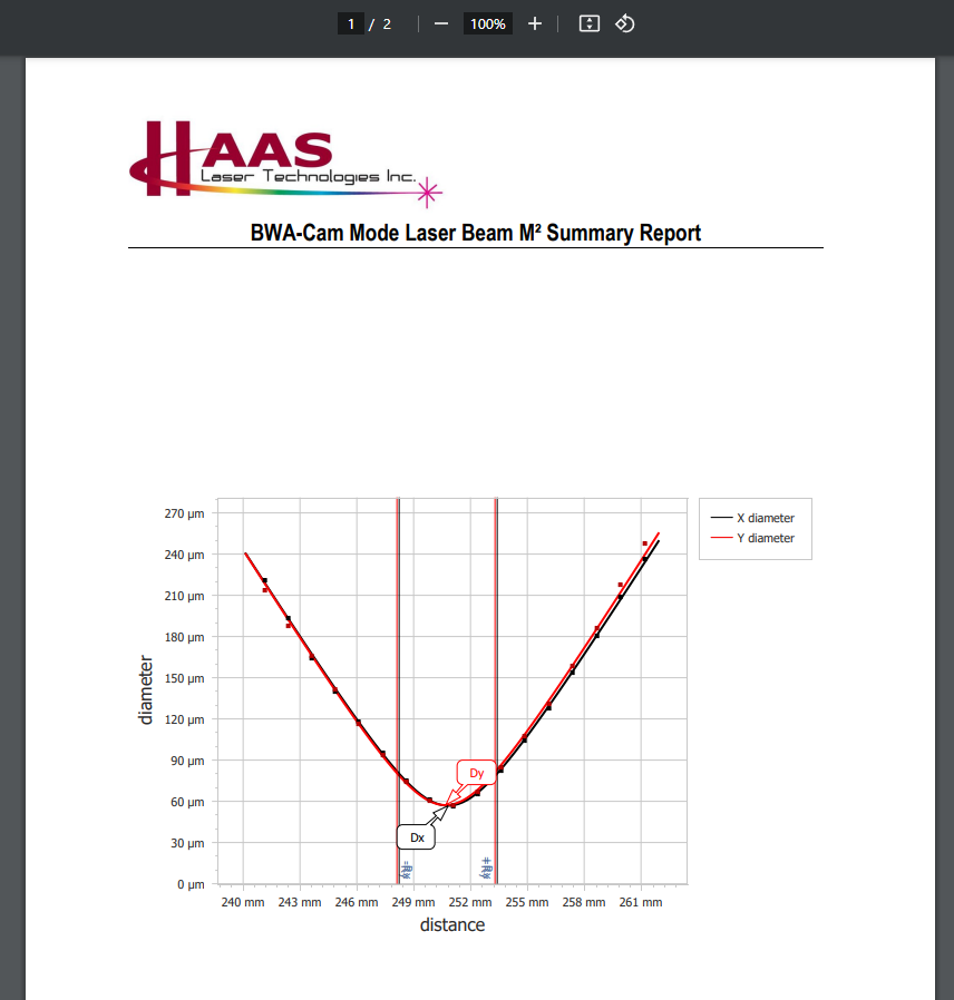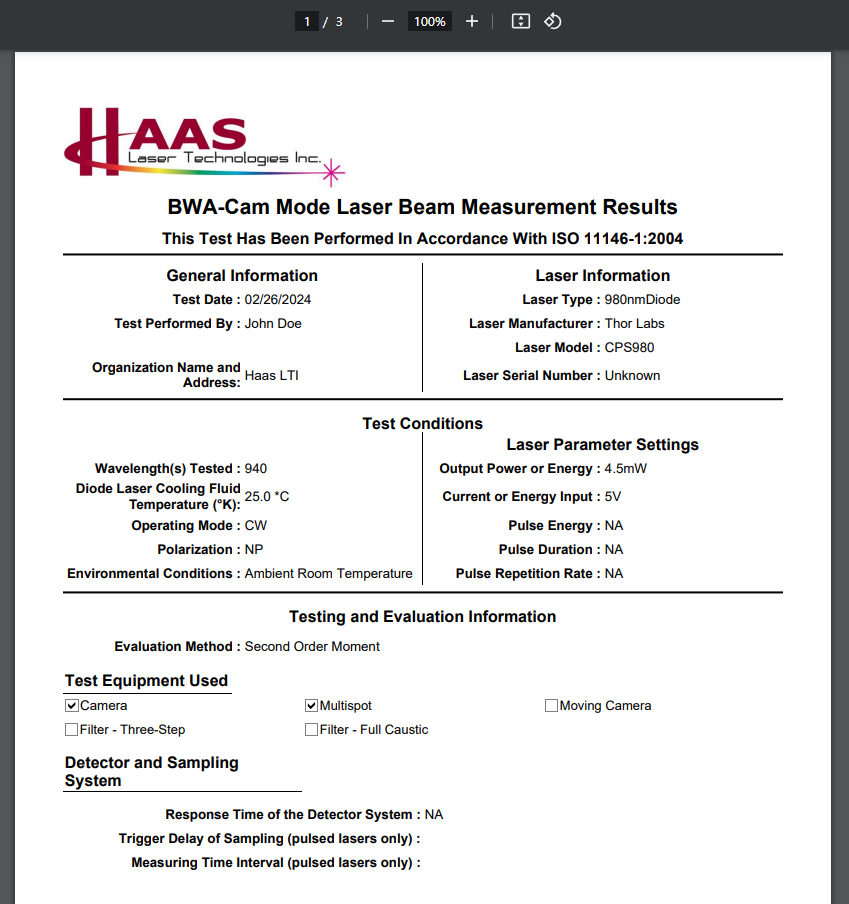 With these customizable reporting options, users can select the format that best fits their application, ensuring clarity, compliance, and thorough documentation of beam diagnostics.